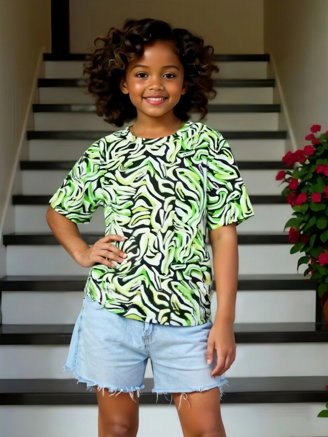 Футболка для девочки из 100% хлопка с оригинальным рисунком идельно подходит для повседневного гардероба.Крой свободный - прямой. Горловина обработана окантовкой в цвет футболки. Ткань:трикотаж производства Турции. Плотность 145 гр/м2.