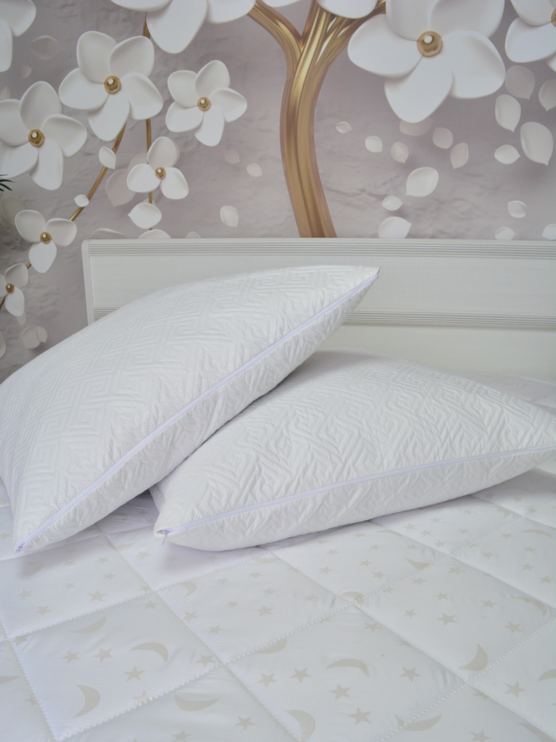 Наперник стеганный "белый" на молнии (1 шт.). Двухстороннее стеганное полотно ультразвуковой стежкой (безниточного скрепления).